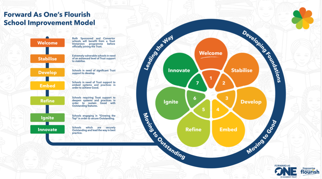 As an organisation where Our One mission is to be an organisation where everyone will flourish, our Flourish model of school improvement underpins this approach.